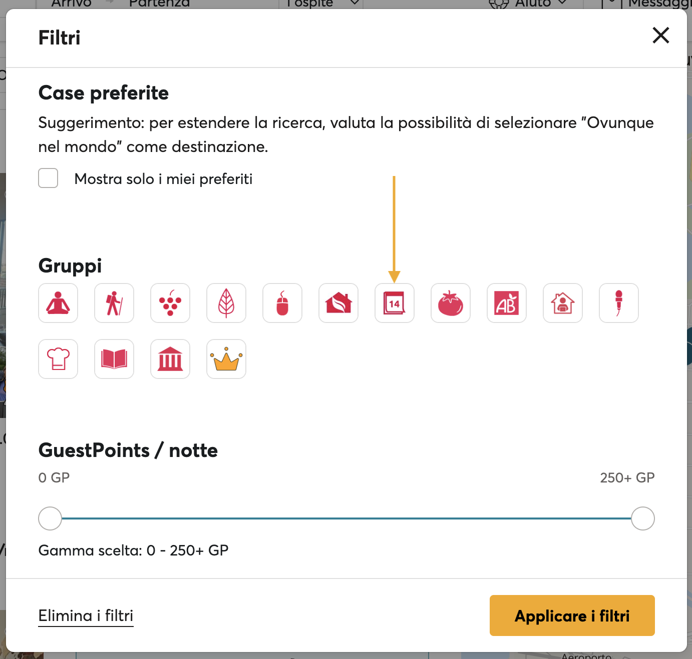- Usa i filtri di ricerca per affinare i criteri (tipo di alloggio, servizi ecc.).