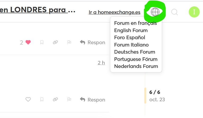 English Forum - Forum HomeExchange este es el foro inglés. También encuentras todos los foros si le das al símbolo circular que hay al lado del símbolo de tu perfil en el foro. Te añado una foto donde lo puedes ver.