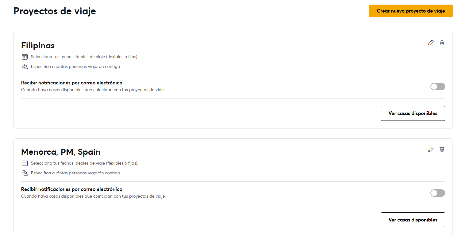 recibir alertas por email cada vez que una casa en ese destino queda disponible.